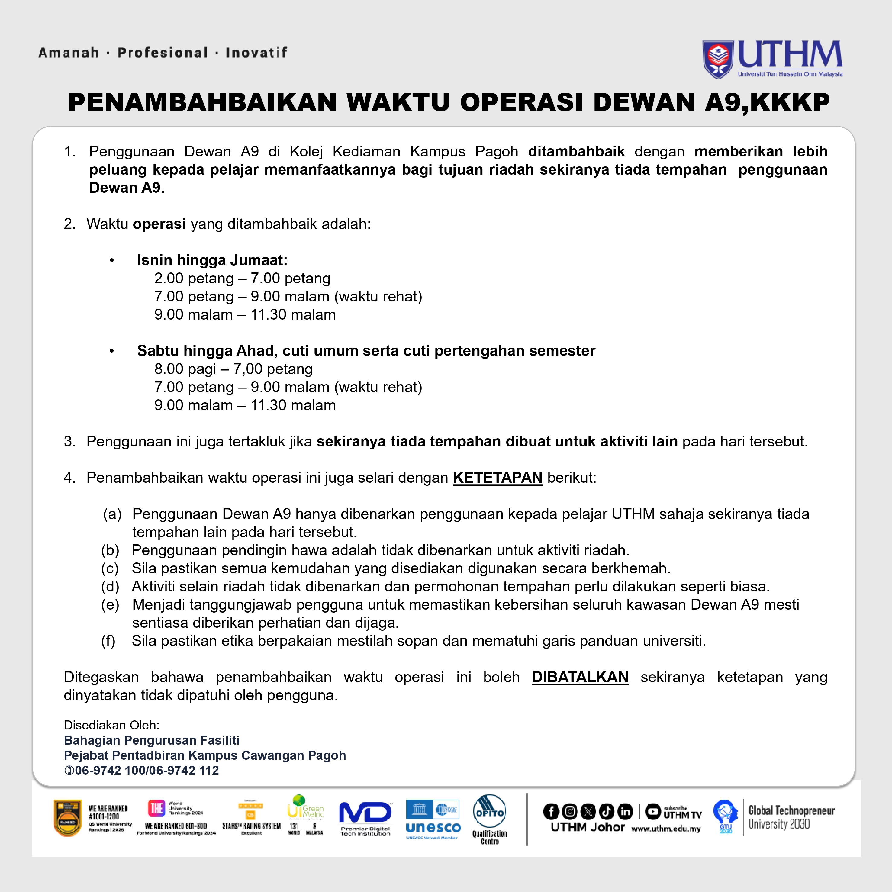 INFO PROVOST UTHM KAMPUS CAWANGAN PAGOH